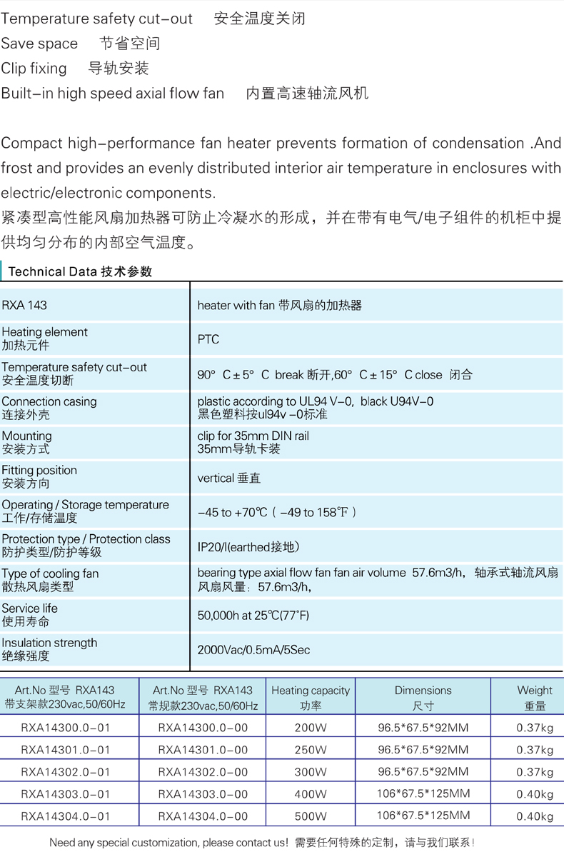 風(fēng)扇機(jī)柜加熱器/機(jī)柜除濕裝置可防止冷凝的形成,并在機(jī)柜中提供均勻分布的內(nèi)部空氣溫度。